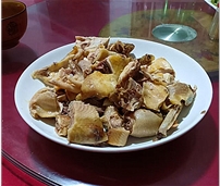 農(nóng)家菜有:開(kāi)化小青螄、筍干燉豬肉、白切雞、小龍蝦、朱熹白臘肉、五婆強(qiáng)盜炒、芹江長(zhǎng)者蝦、錢(qián)江源山珍、衢州鴨頭、清水魚(yú)、馬金豆腐干、天子喜炊粉等。
